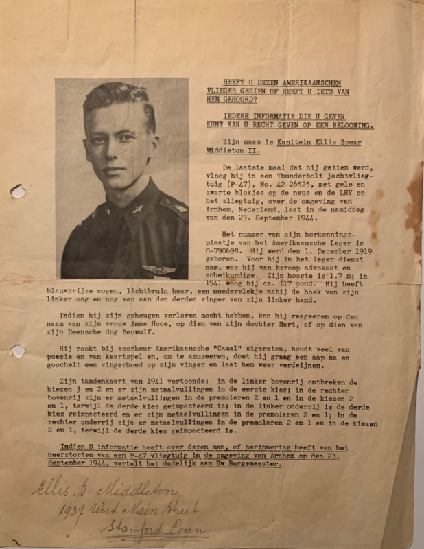 • Captain Middleton flew a combat mission supporting the airborne landings near Arnhem, Netherlands.
